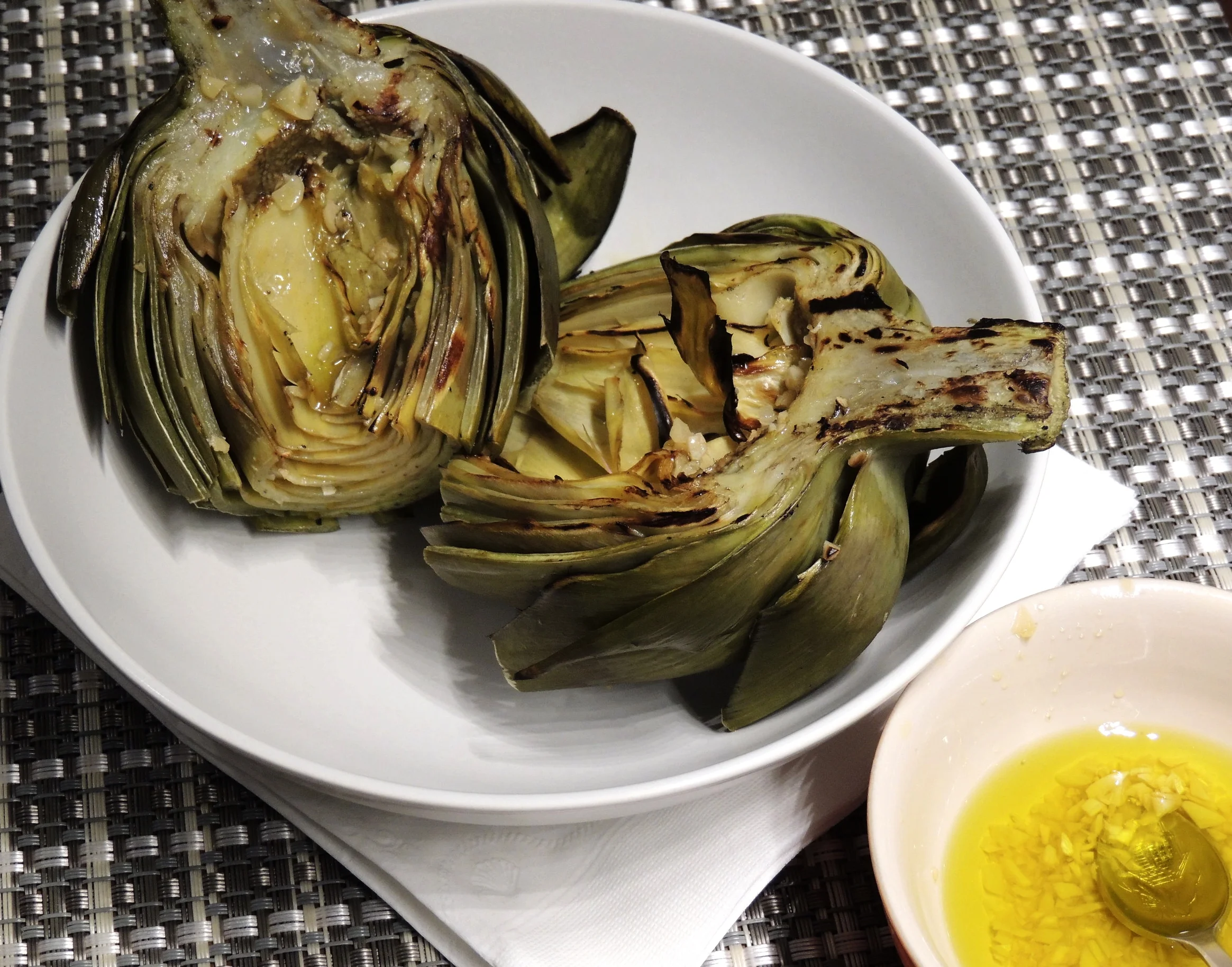 Grilling makes almost everything taste better, including artichokes! The trick to making a great grilled artichoke is doing most of the cooking before it ever hits the grill. The artichoke should be steamed and cooked until fully tender, but not overly soft. Brush them with oil and garlic, sprinkle with salt and pepper, then grill till you char some grill marks into the stem. The result is a tender, flavorful artichoke – a nice change of pace from the steamed variety.